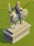 The Mounted Warrior Statue is a building, which serves no other use than to decorate one's Capital City. It can be bought from the Startling Statuary store for 200 coins and in Gods and Fountains Blueprints for 300 coins