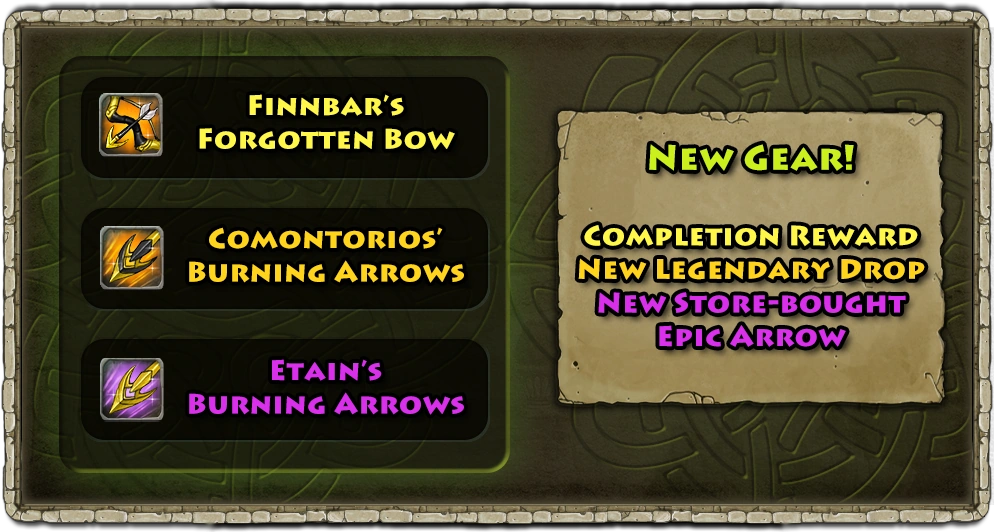 - The Forgotten Bow - rewarded after finishing all 7 legendary variants of the quests packs.